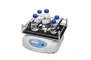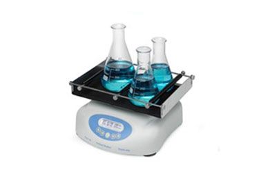 Microprocessor controlled shaking platform providing smooth and quiet horizontal orbital motion for mixing in bottles, flasks and beakers.