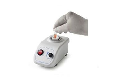 Extremely compact personal vortex mixer with a low profile and small footprint for gentle mixing to vigorous re-suspension of cell or chemical pellets in 0.5 ml, 1.5 ml and 15 ml tubes.
